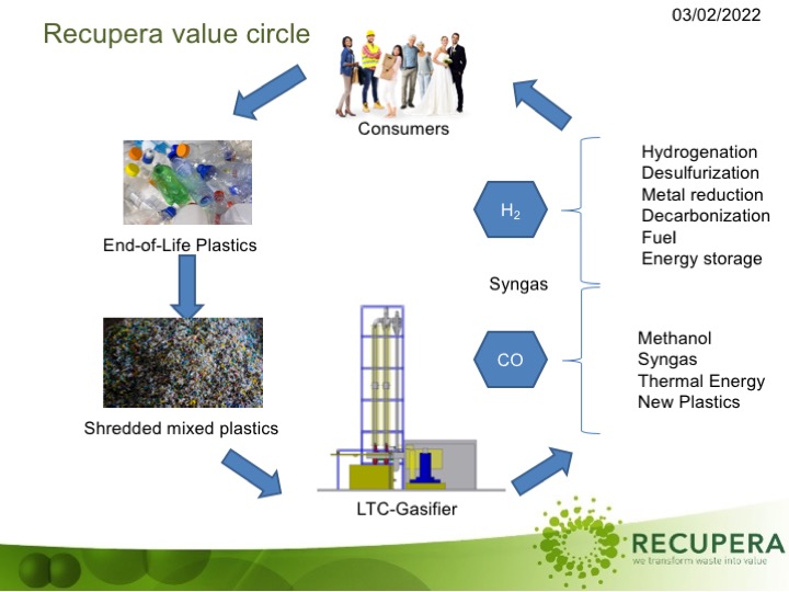 Our technology convert mixed not clean plastics into renewable syngas that can be used for downstream chemical processing. Our goal is to produce renewable chemicals for the chemical industry, not the conversionto energy. Our process has no CO2 emissions.